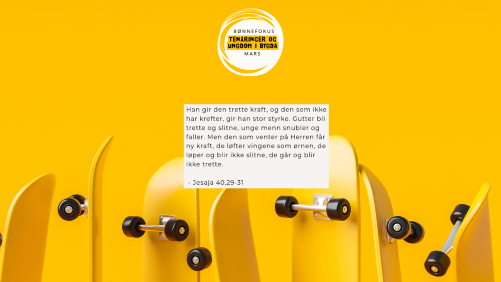 - Velsignelse til alle som jobber med ungdom; lærere, foreldre, Moonlight, frivillig, menigheter/kirkene.