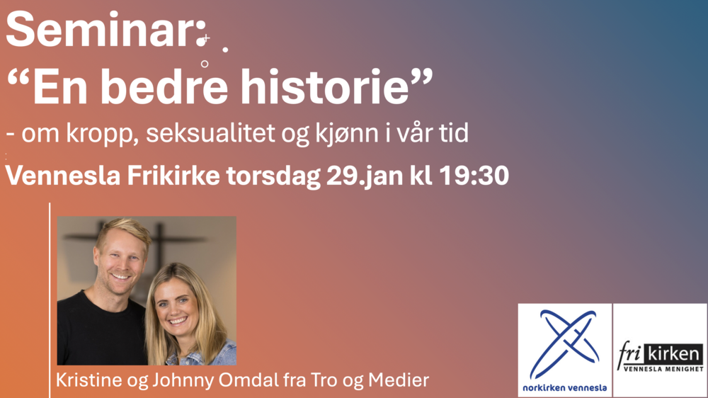 Torsdag 29.jan kl 19:30 inviterer Norkirken Vennesla og Vennesla Frikirke til felles seminar i Frikirken.